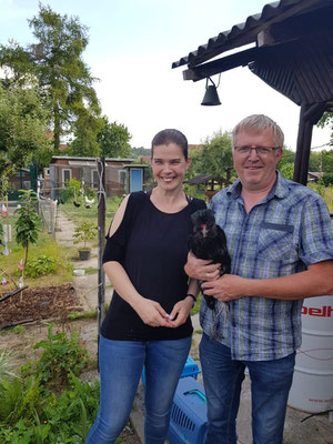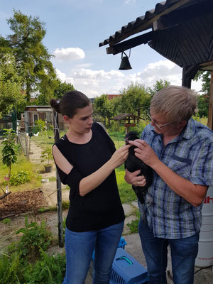 Vereinsmitglied Melanie Scharf-Tuider besucht ihren Zuchtfreund Frank Morgenweck vom SV Haubenhühner u. seltene Hühnerrassen in Schlotheim. Die besonders raren Crevecoer in schwarz u weiß sowie